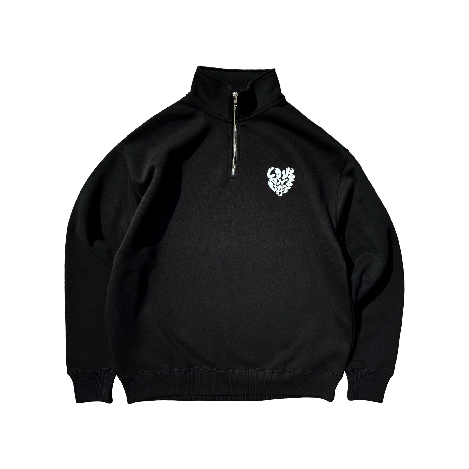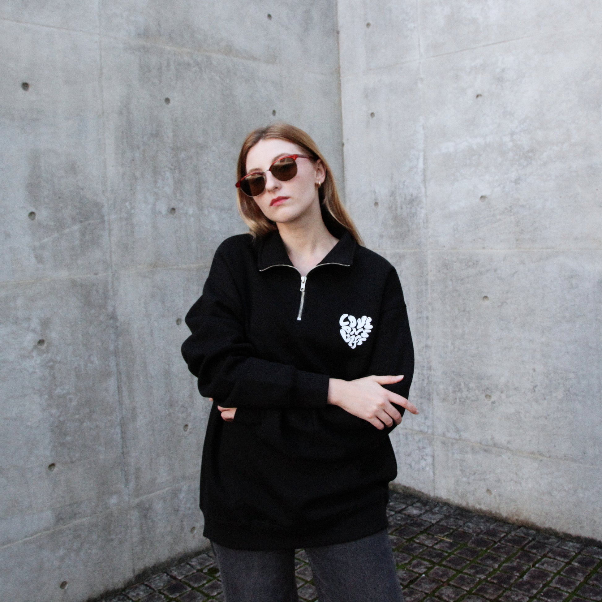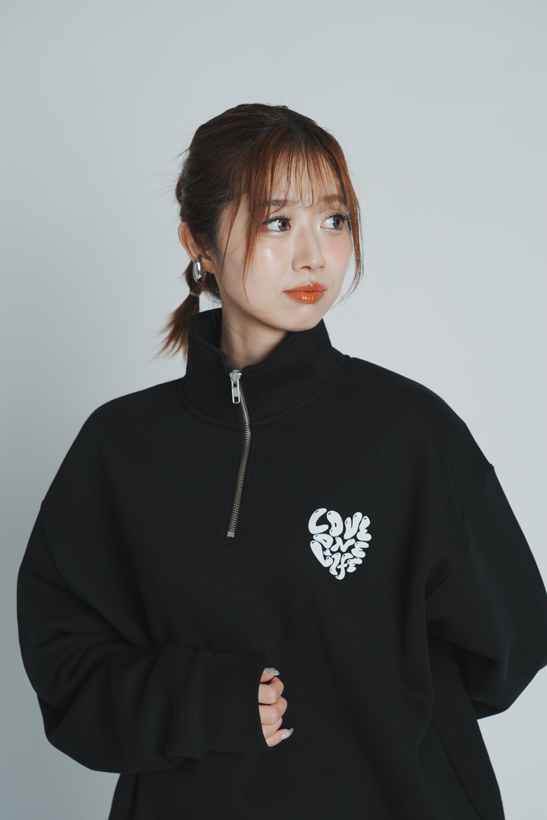 シルクスクリーンプリントを施した裏起毛ハーフジップスウェット