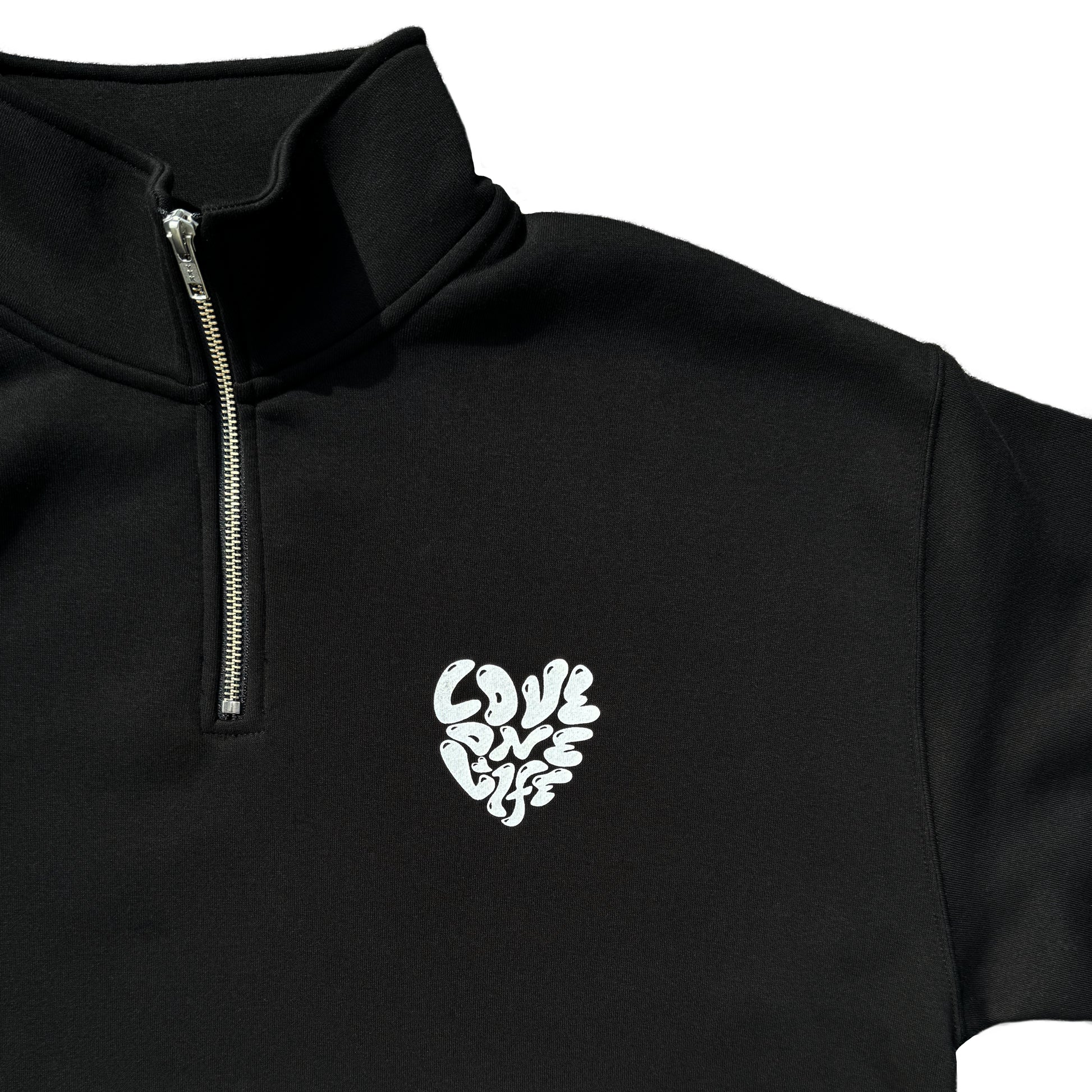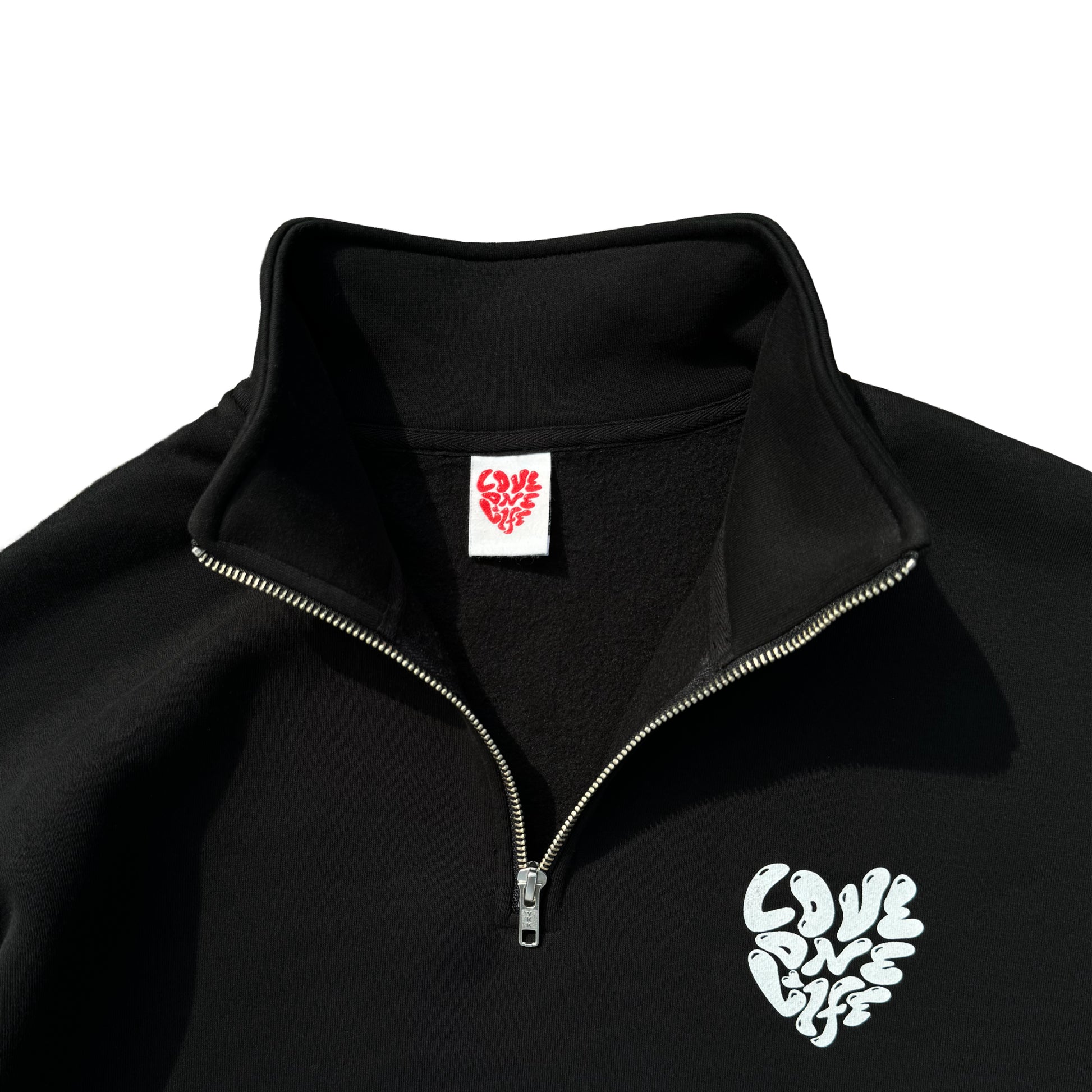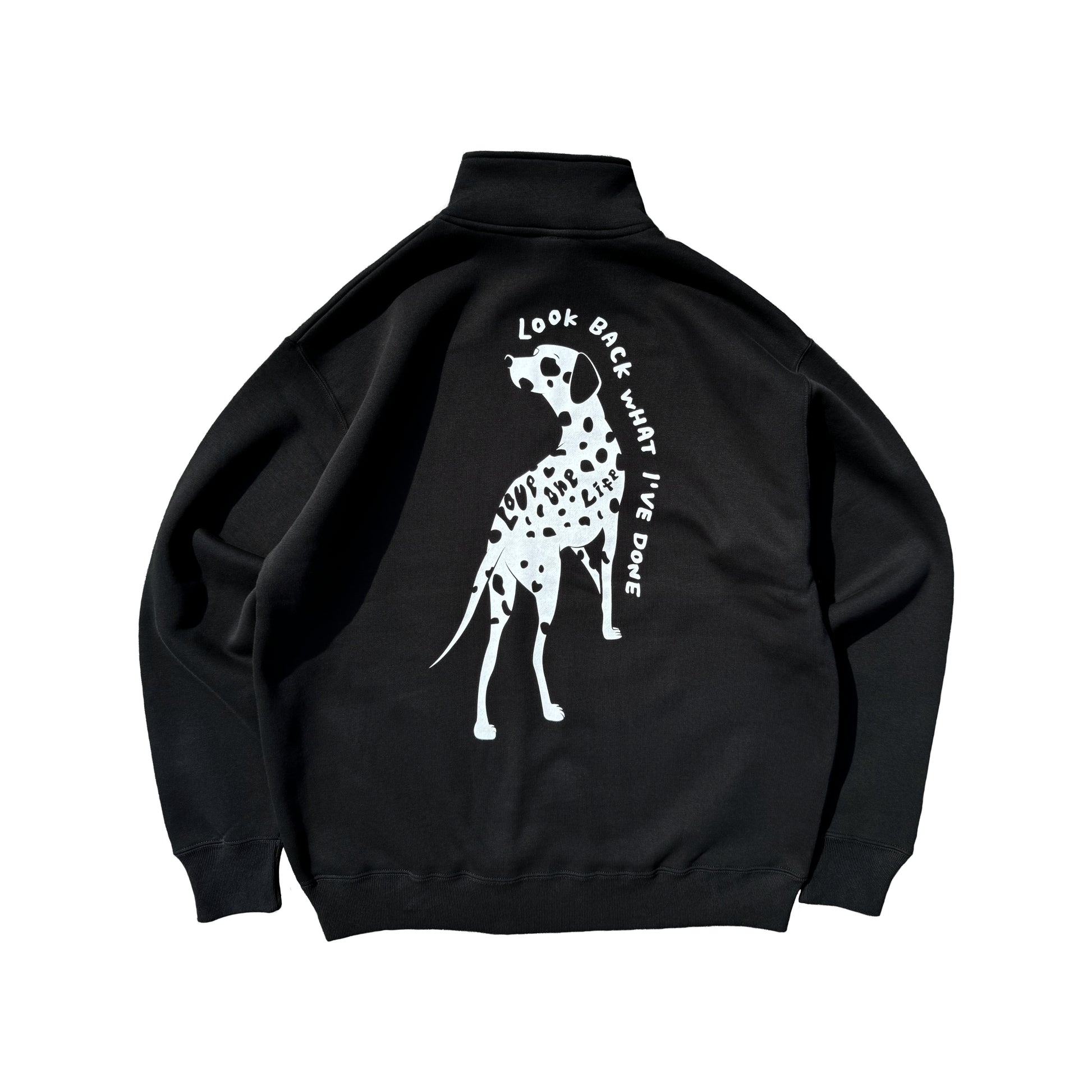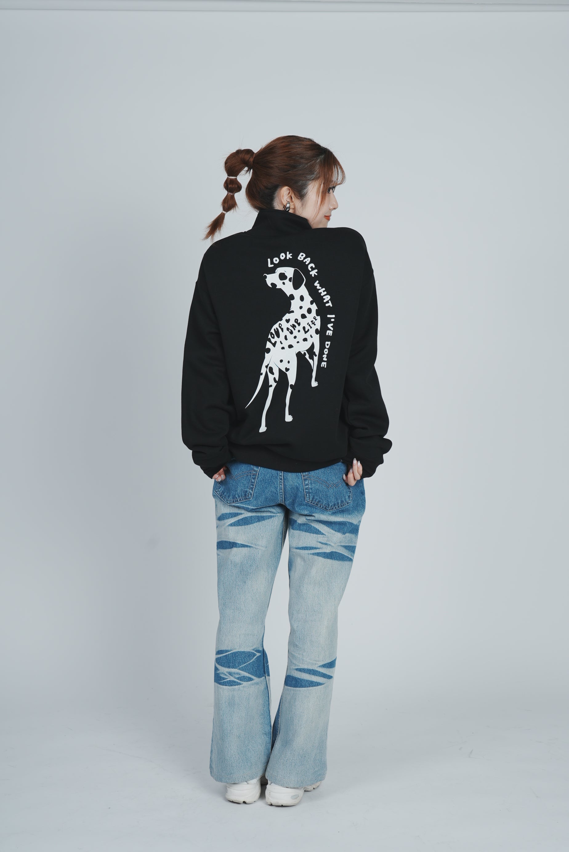 シルクスクリーンプリントを施した裏起毛ハーフジップスウェット