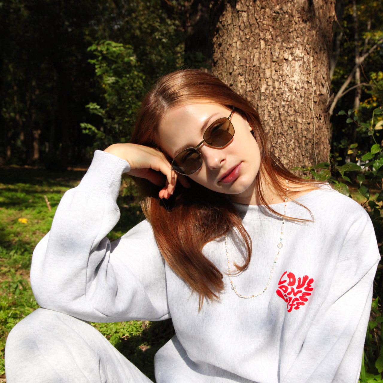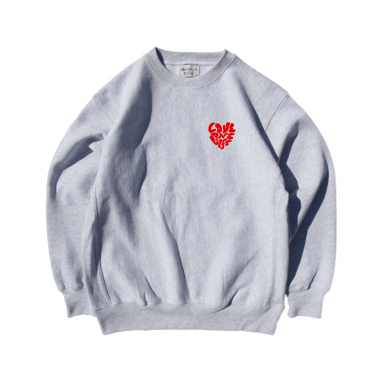 リヴァースウィーブで型崩れを防ぐハイクオリティの12oz のスウェットにハートロゴがプリントされています。