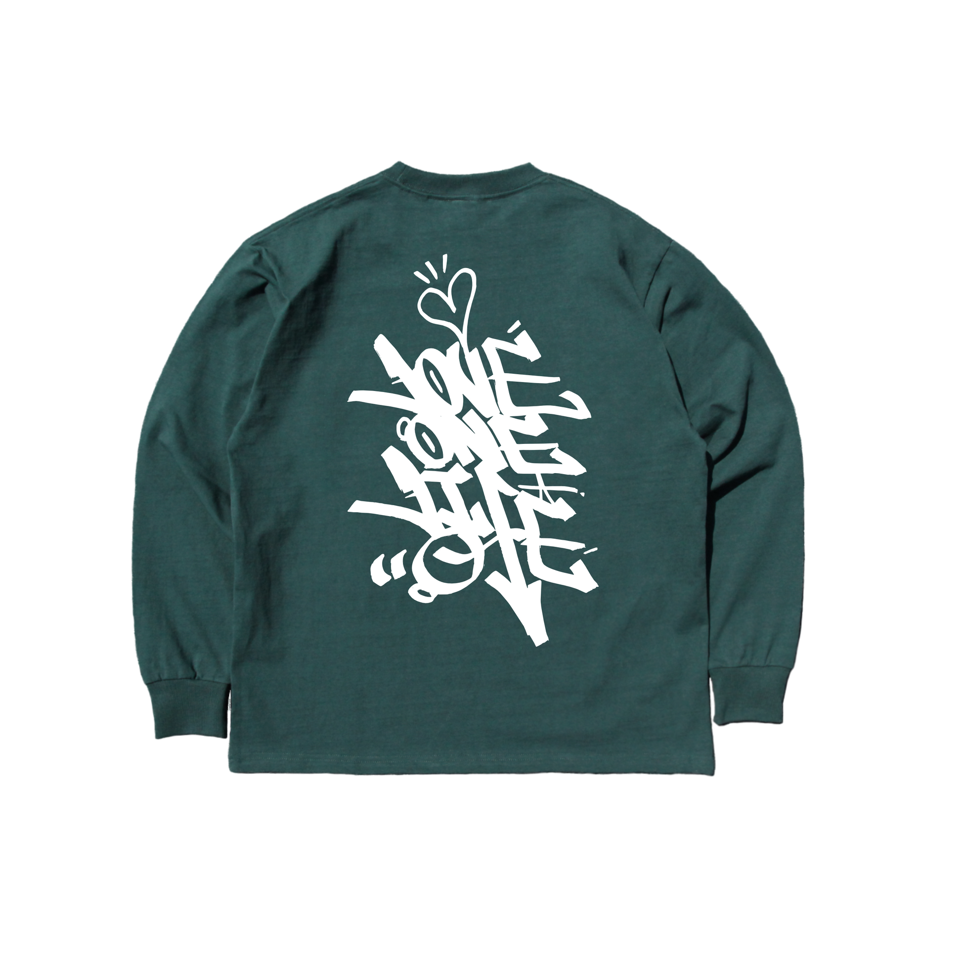 tagging back print LS tee in deep green